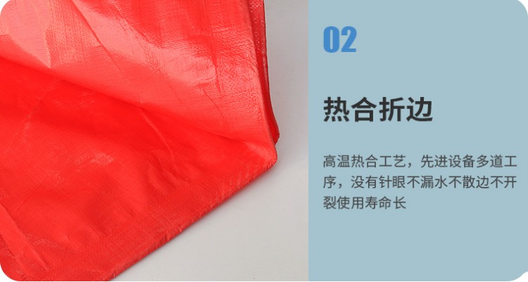 大紅色PE防水篷布熱合折邊:高溫?zé)岷瞎に?,先進(jìn)設(shè)備多道工序,沒(méi)有針眼不漏水、不散邊、不開(kāi)裂,使用壽命長(zhǎng)。