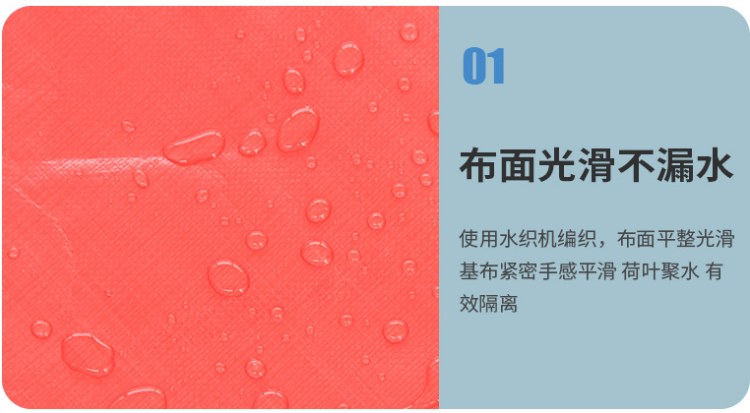 大紅色PE防水篷布布面光滑不漏水:使用水織機(jī)編織,布面平整光滑,基布緊密手感平滑,荷葉聚水,有效隔離。
