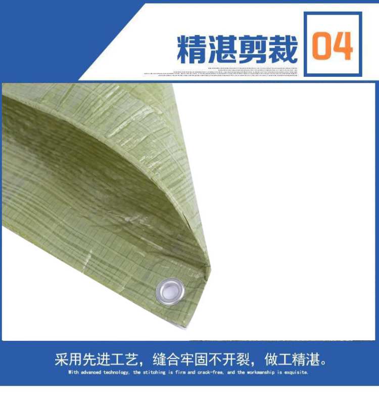 淡黃色網(wǎng)格色PE防水篷布精湛裁剪:采用先進(jìn)工藝,縫合牢固不開(kāi)裂,做工精湛。