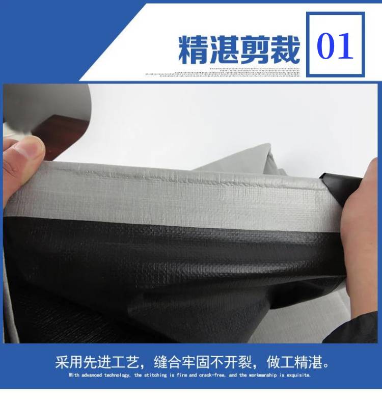產(chǎn)品介紹黑銀色PE防水篷布做工精良裁剪**,關(guān)鍵細(xì)節(jié)放大看,用料足,工藝精致黑銀色PE防水篷布精湛裁剪,采用先進(jìn)工藝,縫合牢固不開裂···
