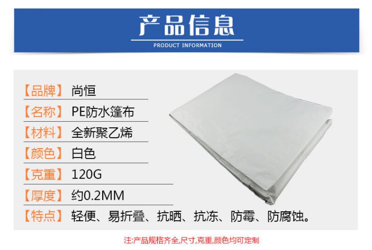 產(chǎn)品介紹雙白色PE防水篷布產(chǎn)品信息參數(shù)雙白色PE防水篷布立體包邊:立體包邊,加厚設(shè)計,邊緣美觀結(jié)實,使用壽命長。雙白色PE防水篷布防水···