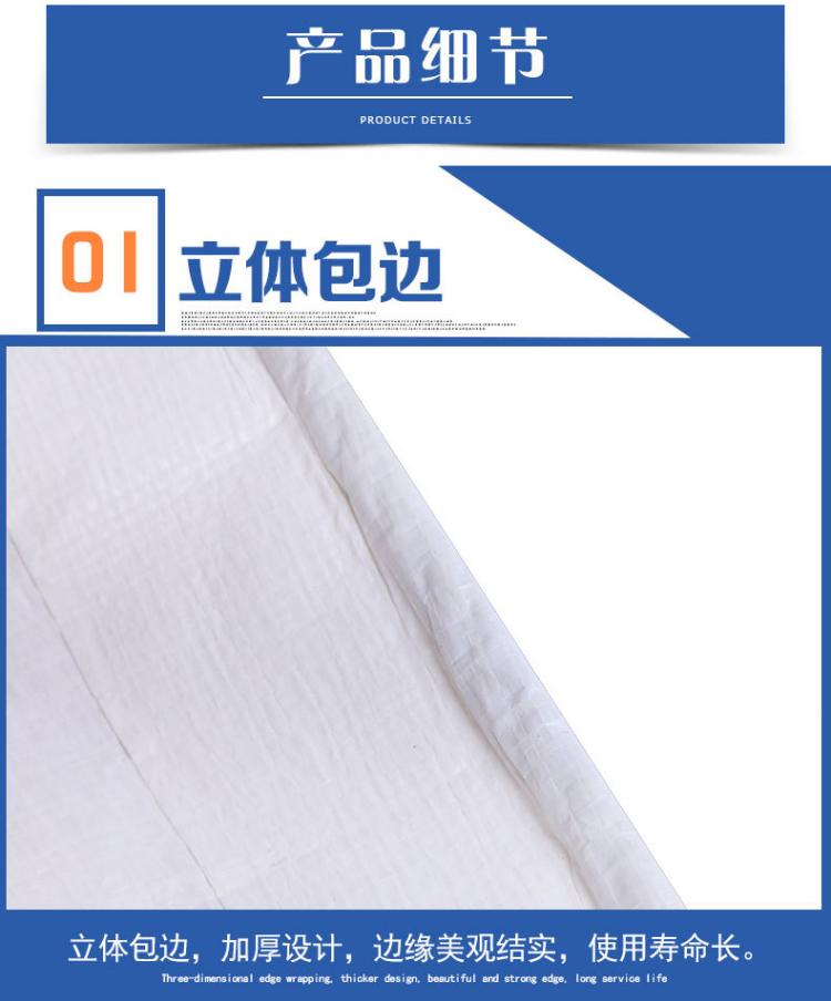 雙白色PE防水篷布立體包邊:立體包邊,加厚設(shè)計,邊緣美觀結(jié)實,使用壽命長。