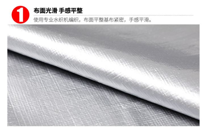 雙銀色PE防水篷布反光設(shè)計(jì),有效阻擋紫外線,防止光老化。防曬:陰面朝上,反射太陽